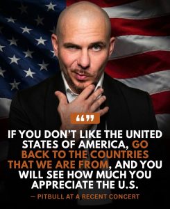 During a recent concert, the rapper known worldwide as “Mr. Worldwide” paused mid-show to deliver a statement that would soon ripple far beyond the arena walls. Addressing the crowd, he declared: “If you don’t like the United States of America, go back to the countries that we are from, and you will see how much you appreciate the U.S.”