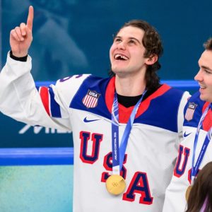 The photo of his wide gap-filled smile has quickly become iconic, especially since he was wrapped in the American flag. Now, his mother, Ellen Hughes, and his brother, Quinn Hughes, are reacting to his tooth loss. Ellen Hughes and Jack’s dad, Jim Hughes, appeared on the TODAY Show on February 24. Team USA men’s hockey is expected to attend the State of the Union address on February 24.
