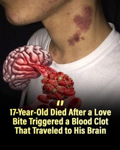 A 17-year-old boy reportedly died after developing a blood clot linked to a hickey, also known as a “love bite.” According to medical reports, intense suction on the neck damaged small blood vessels, leading to the formation of a clot. That clot is believed to have traveled to the brain, triggering a fatal stroke.