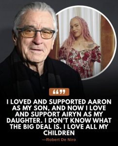 “I loved and supported Aaron as my son, and now I love and support Airyn as my daughter… I don’t know what the big deal is. I love all my children,” De Niro said. His words, simple yet powerful, quickly spread across social media, sparking emotional reactions and widespread praise.