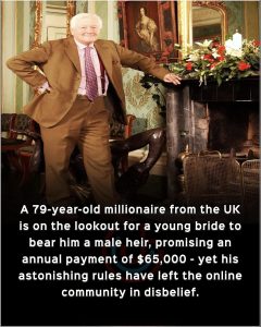 Sir Benjamin Slade, a 79-year-old British aristocrat and millionaire, has spent years making headlines for his highly specific and, to many, “shocking” search for a wife. Residing in the historic 13th-century Maunsel House in Somerset, Slade is desperate for a male heir to inherit his vast estate and fortune. To find the right candidate, he has offered a $65,000 (£50,000) annual “allowance,” plus access to his credit cards and luxury travel.